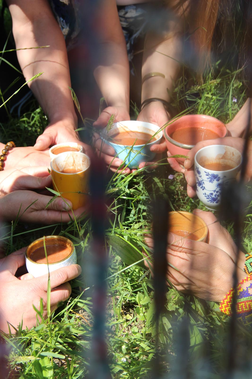Gemeinsam Cacao trinken und mit der Gruppe das tiefere Erleben von Einssein erfahren.